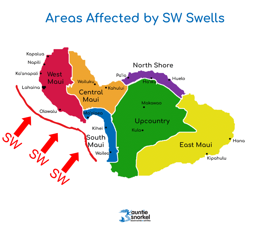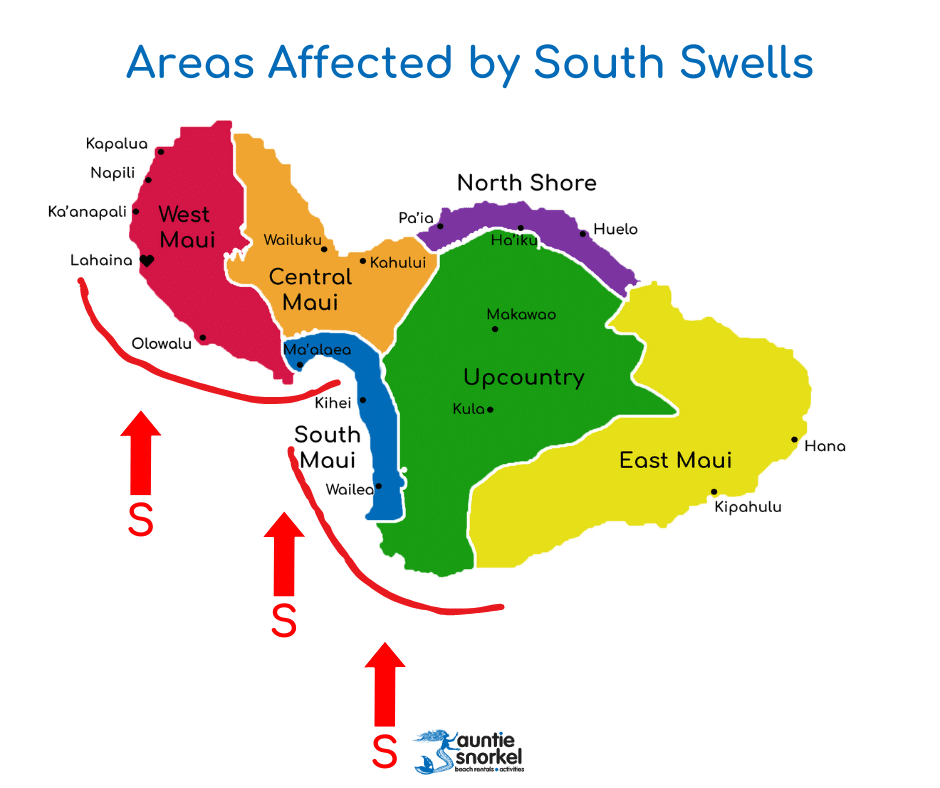 While these summer south swells are a dream for beginner surfers, they can stir up the water along south-facing snorkeling spots, especially in the afternoons or on bigger swell days. That means reduced visibility and increased surge in otherwise calm areas like Ulua Beach, Maluaka Beach, and Olowalu Mile Marker 14.