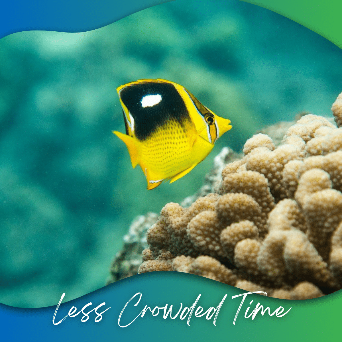 By arriving at the crater just after most of the other boats have just departed, the area is almost empty allowing you to drift snorkel large areas of the rim if conditions allow.