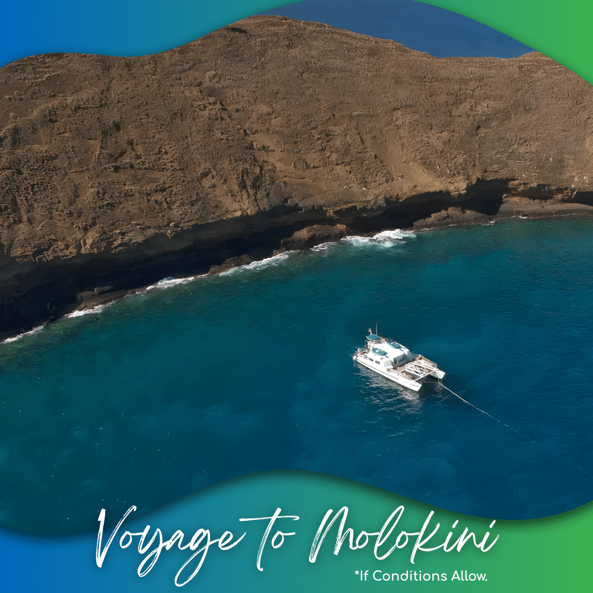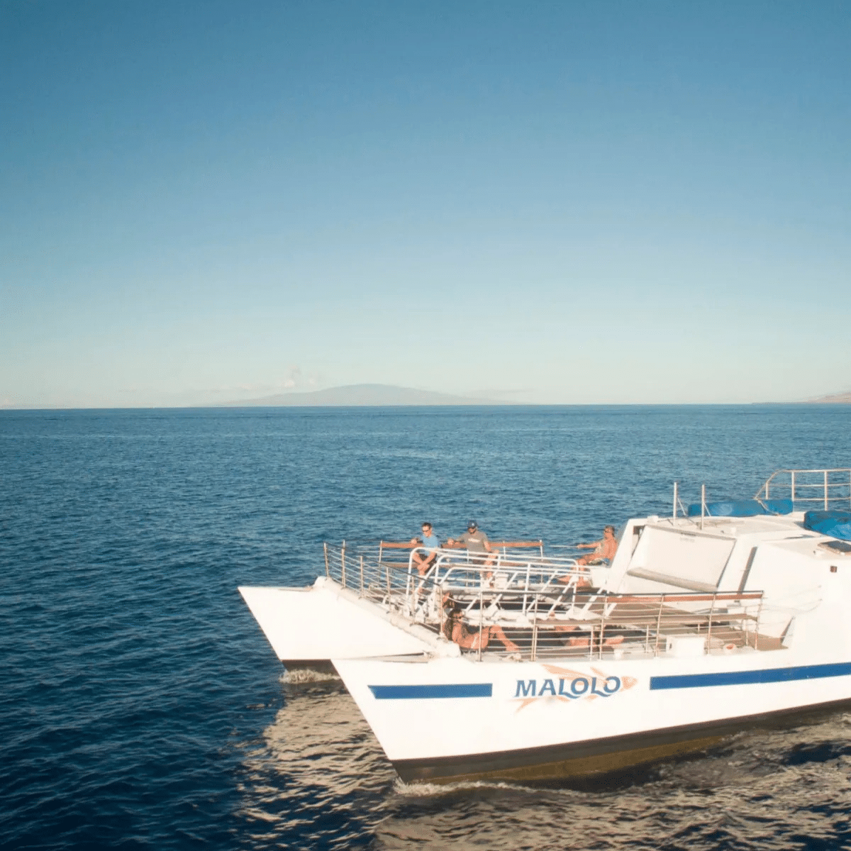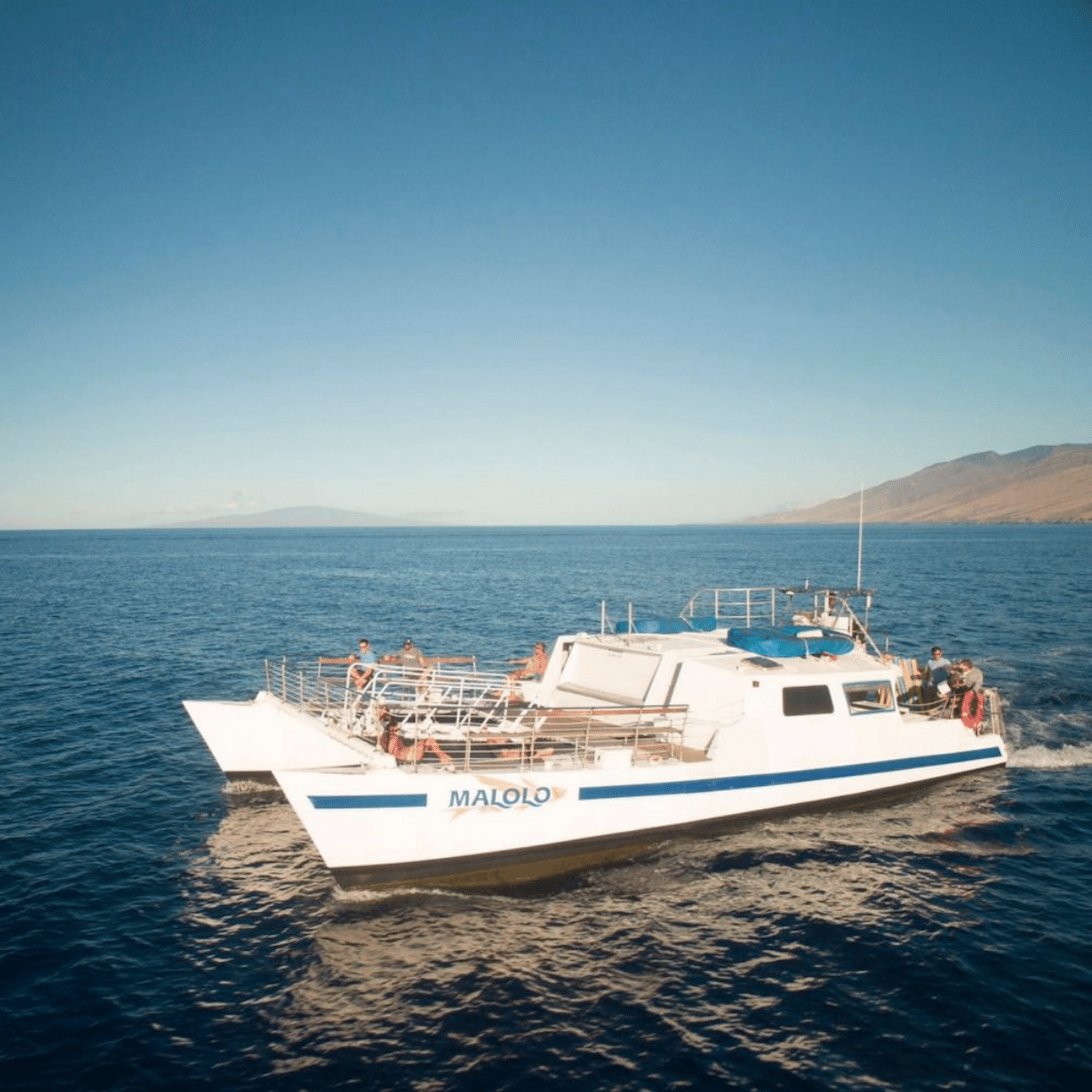 Malolo is a 55-foot power catamaran designed for comfort and ease on the water. Easy-access stairways into the water at both the front and rear of the boat make snorkeling approachable for all experience levels. Trampolines to lay out on, two onboard restrooms, and a friendly experienced crew round out the package.