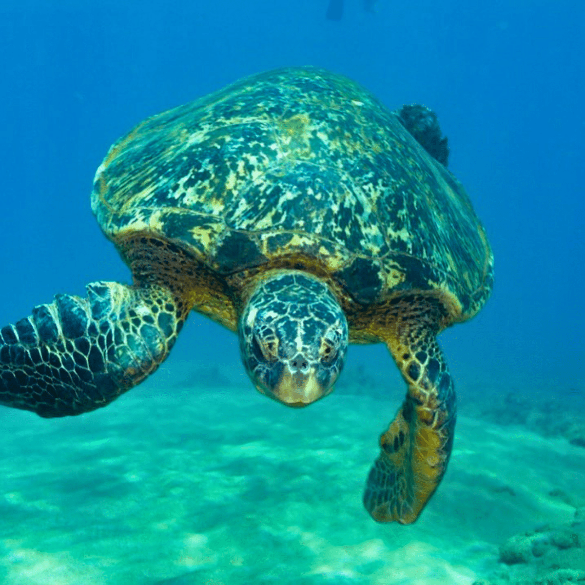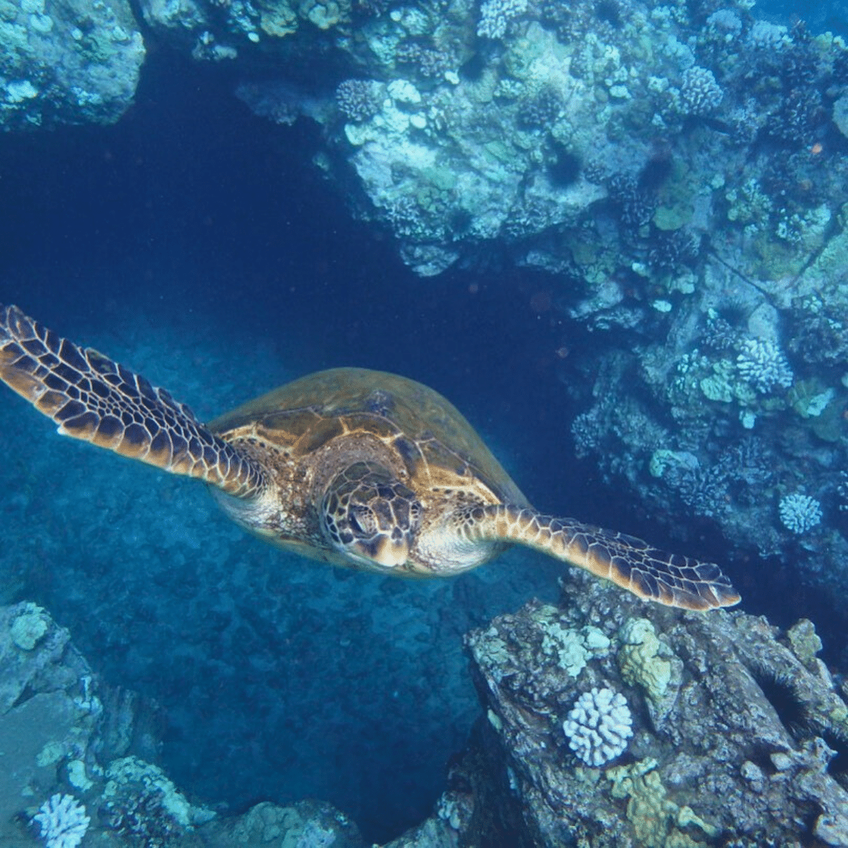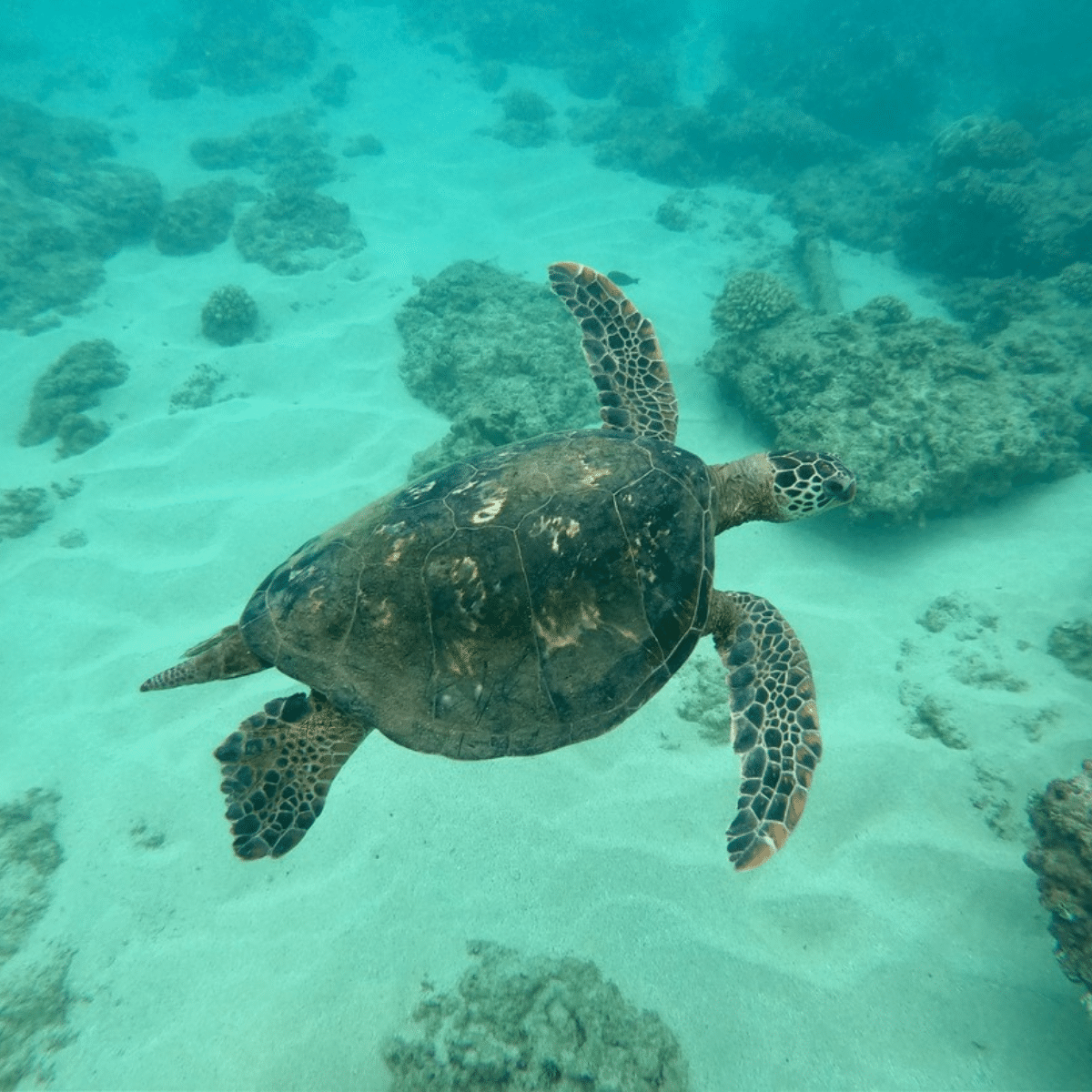 ✔ Hawaiian green sea turtles resting or grazing on the reef