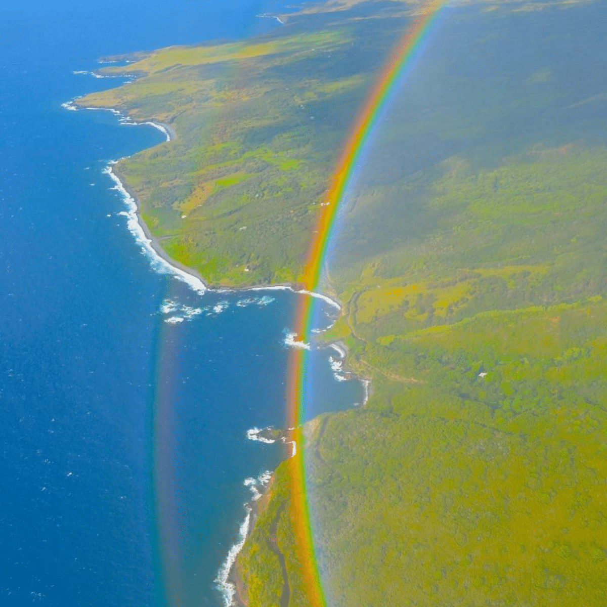 - The rugged East Maui coastline where the rainforest meets the Pacific, with views extending out toward the open ocean