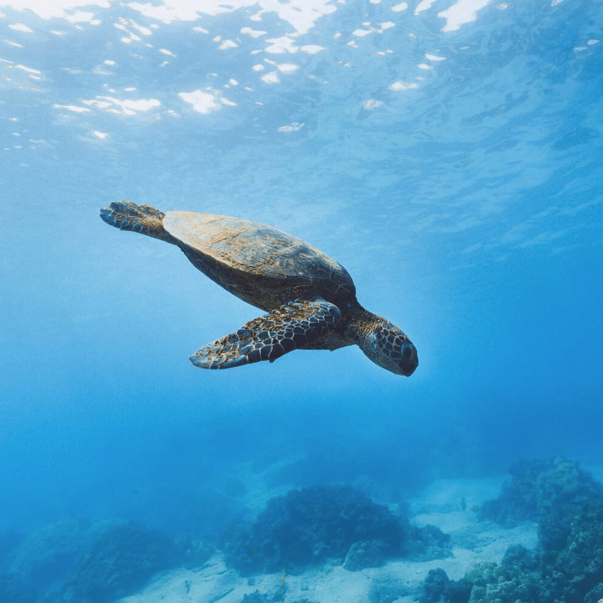 ✔ Hawaiian green sea turtles resting or grazing on the reef