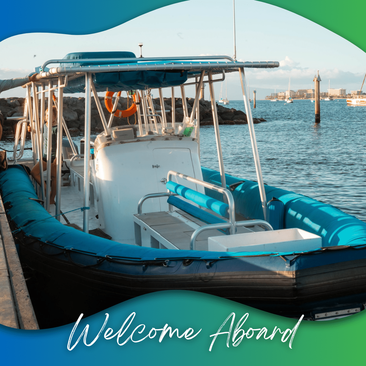A zodiac-style inflatable raft sits low to the water, travels faster, and rocks significantly less than a catamaran. The low profile puts you at eye level with dolphins and marine life in a way no large boat can match. The small group size makes the experience feel personal rather than like a group outing.
